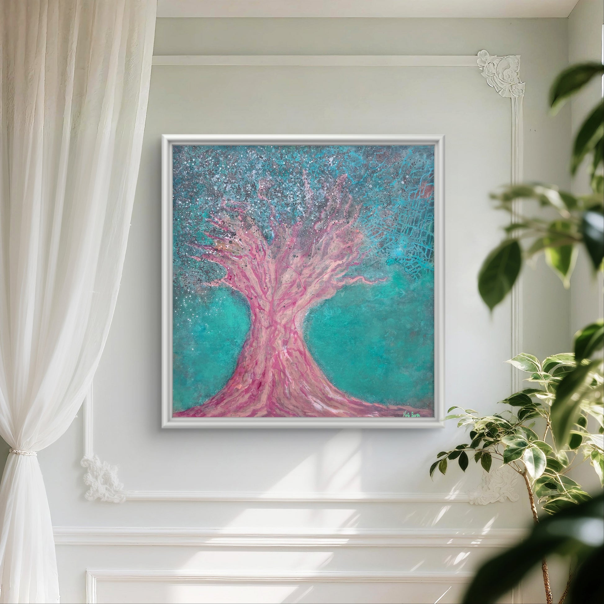 Cette œuvre est un foyer pour ell@s, les enfants de notre terre, une femme pour la créatrice, la mère de la vie, avec son don de gestar, ses, témoignages omniprésents….enraizados et unidos avec des cordons ombilicaux qui pénètrent en elle et sont permanents unidos ,