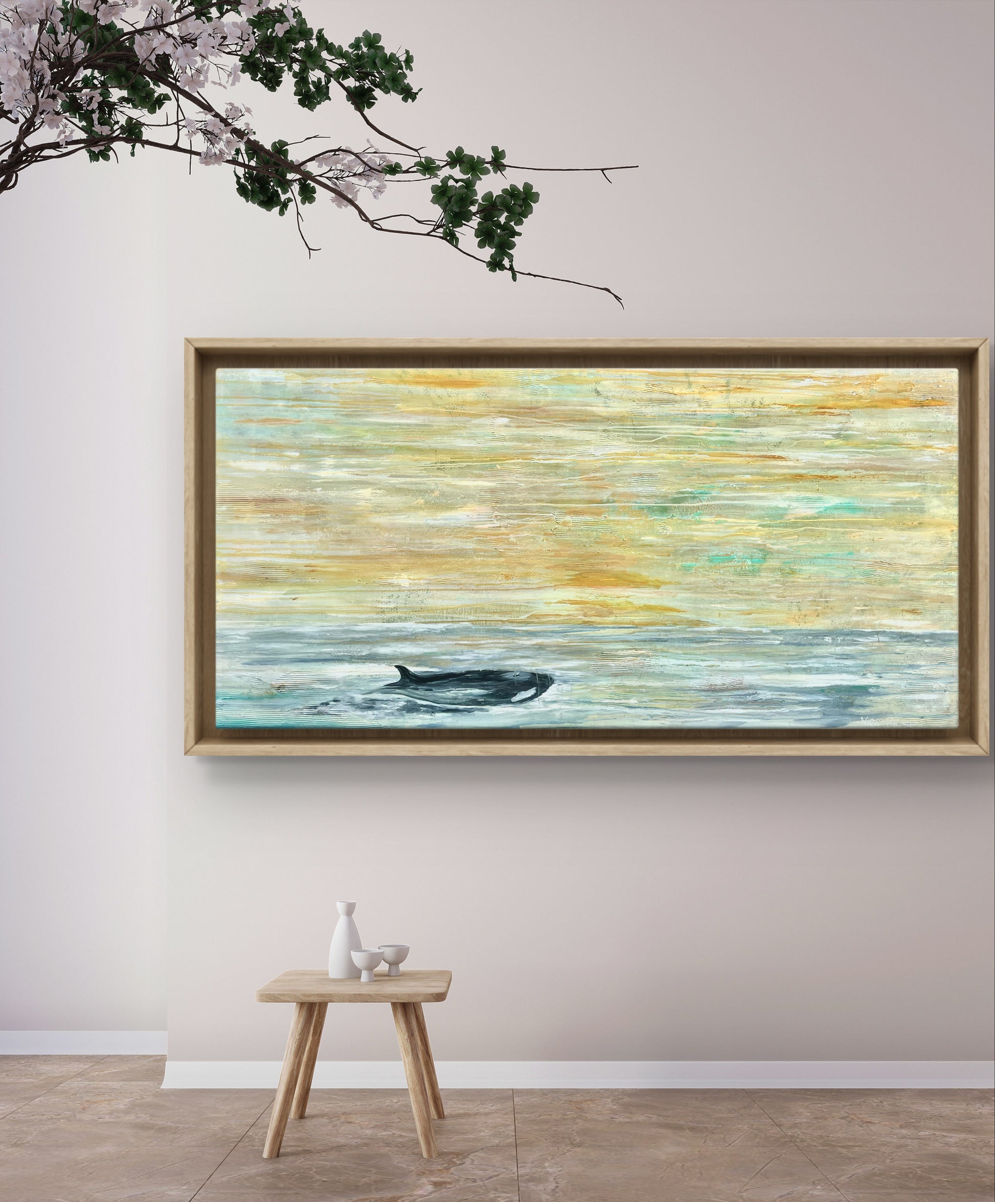Las ballenas emergen en el horizonte como emblemas de sabiduría ancestral, belleza profunda y memoria viva del océano. Inspirada en el avistamiento en José Ignacio (Uruguay), esta obra honra la majestuosidad de la naturaleza en su máxima expresión y, al mismo tiempo, visibiliza su vulnerabilidad frente a la amenaza de ecosistemas vulnerables.