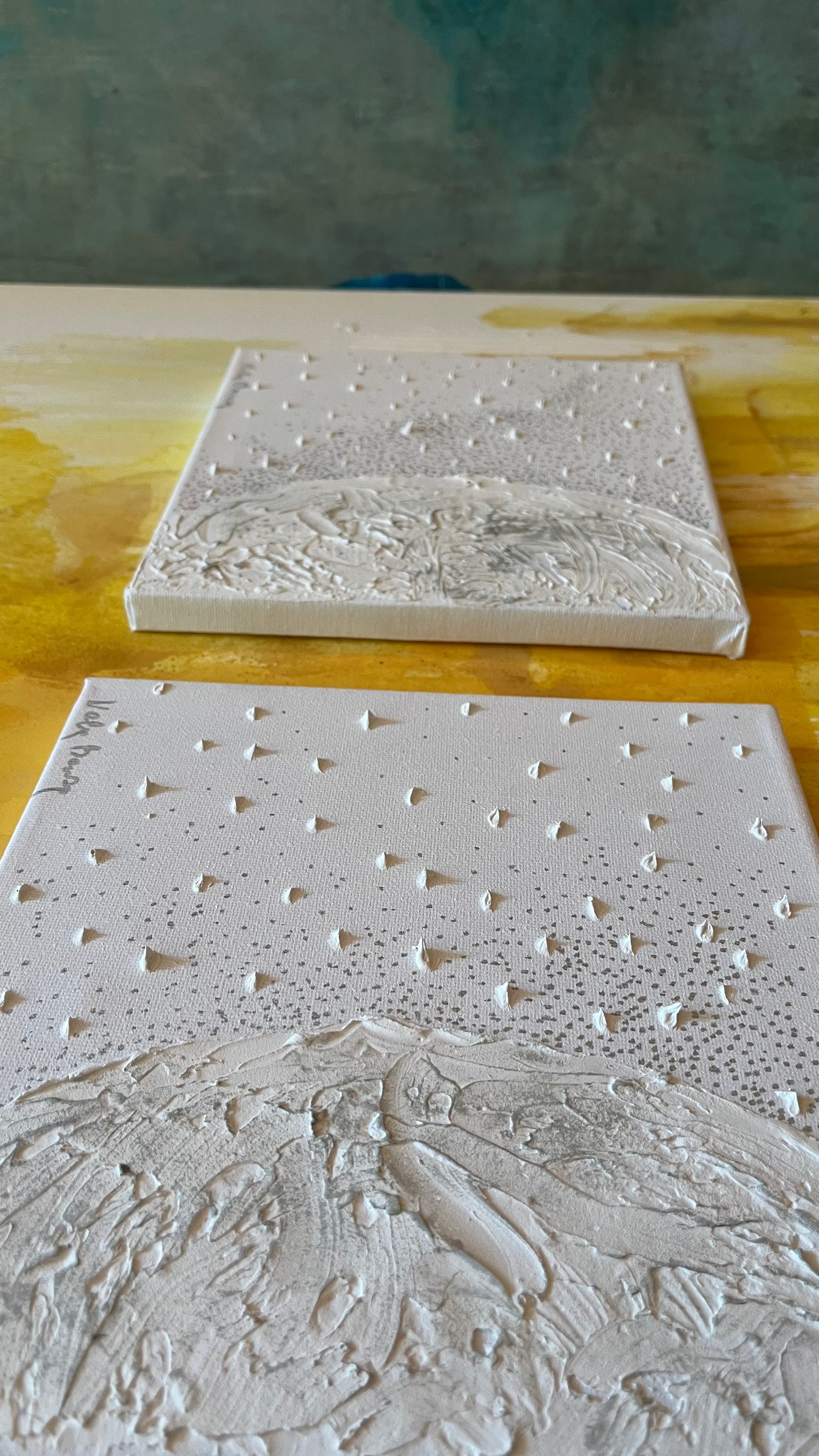 Luna vibrante realizada con relieve texturizado bajo noches de telescopio intentando descifrar su magia pero encontrándome con que verla en cualquier forma o representación nunca se compara con su magnitud imposible de representar